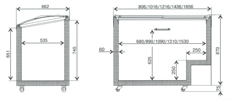 Технические параметры морозильного ларя Juka с гнутым стеклом