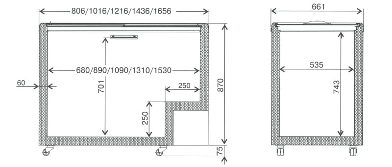 Схема морозильного ларя Juka с прямым стеклом