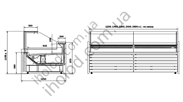 • Подключается к выносной системе холодоснабжения для демонстрационной части self и оснащается встроенным агрегатом для верхнего объема